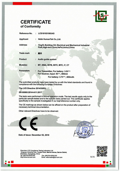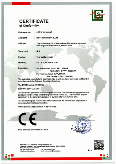 自助講解設備CE證書